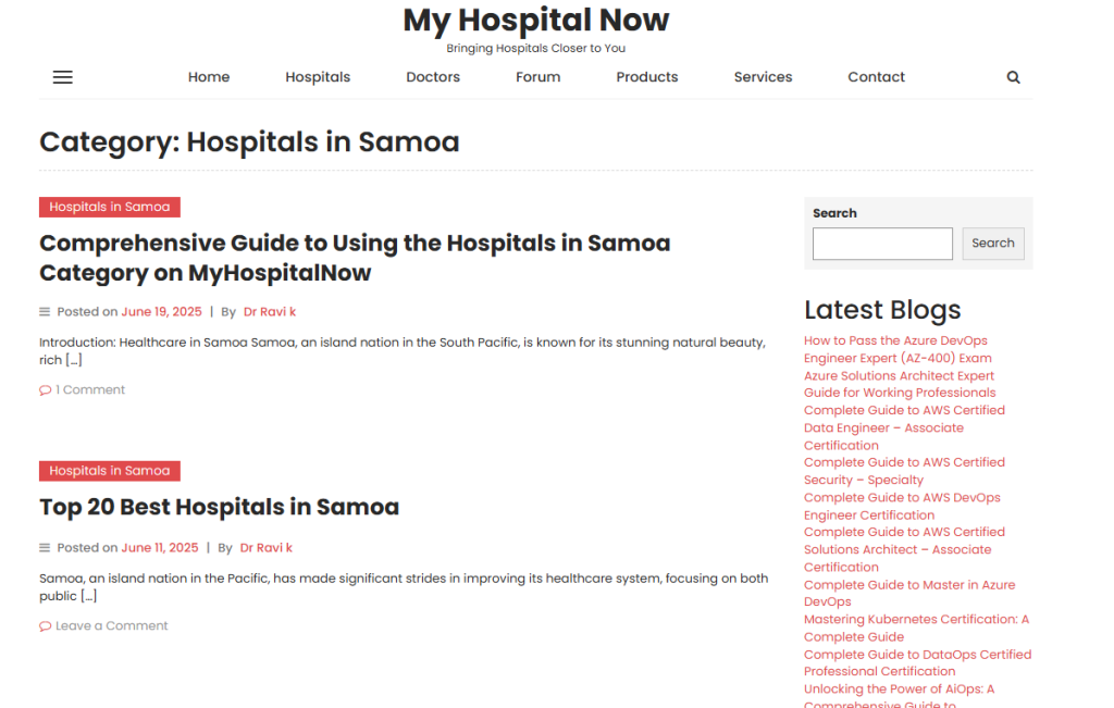 Use Hospitals in Samoa to explore country-focused guidance and ask case-based questions in the MyHospitalNow Forum for a structured checklist.