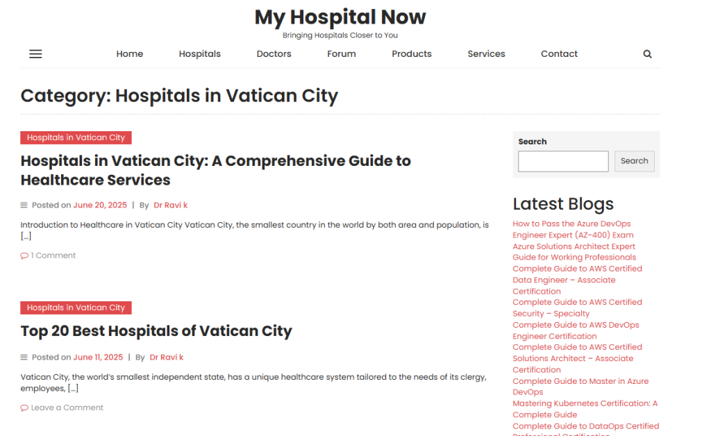 MyHospitalNow stands as your definitive Vatican healthcare compass. Visit immediately Hospitals in Vatican City. Join global MyHospitalNow forum—unlock diplomatic networks, verified Holy See expertise, elevate to Vatican medical perfection. Your sacred healing journey awaits!