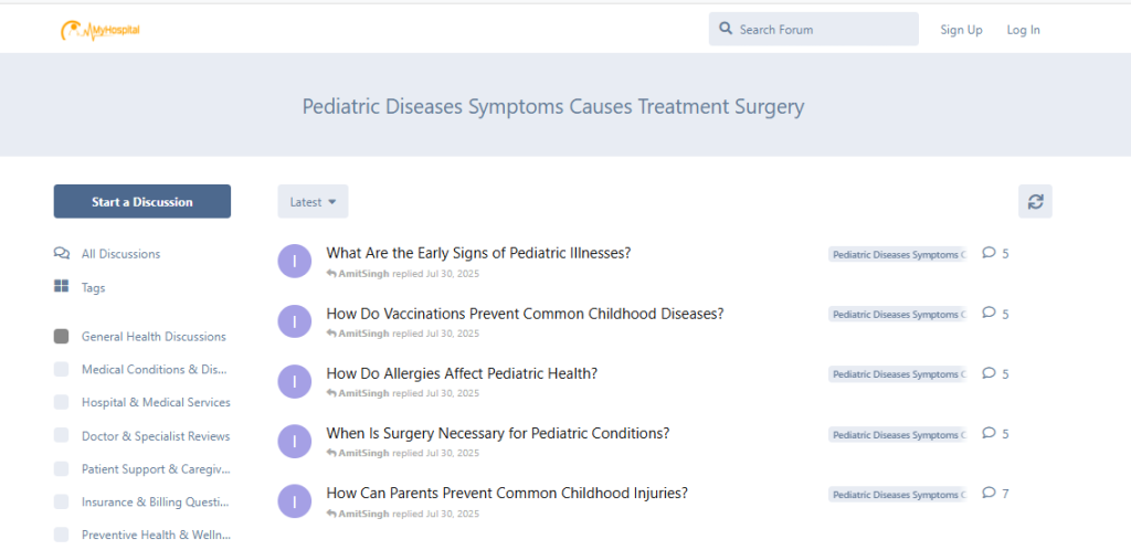 Child health is one of the most sensitive and rapidly evolving areas of medicine — from infections and nutritional disorders to congenital conditions and pediatric surgeries — affecting millions of children every year. The greatest risk is not always the disease itself, but delayed diagnosis and ignoring early symptoms. Many childhood conditions begin with mild signs that parents overlook until complications develop. This comprehensive medical guide helps you understand symptoms, causes, treatments, surgical options, and recovery planning using real patient discussions from the Pediatric Diseases Forum and trusted child-health guidance available through MyHospitalNow healthcare platform. From early detection to advanced pediatric treatment and long-term recovery, this tutorial empowers parents and families to make informed decisions for their child’s health.